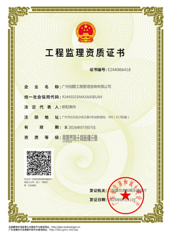 廣州創圖工程管理咨詢有限公司是一家承擔工程建設監理、項目管理(代建)、招標代理、工程設計、施工技術管理、施工過程資料管理、施工全過程造價管理、施工勞務服務等相關服務業務的公司。